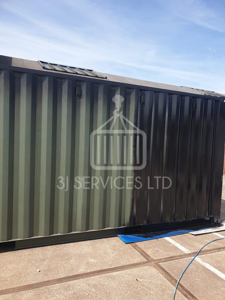 Our events company customer needed their 20ft container repainting black. We removed all of the decals, and masked the seals and locking rods. Another used container made to look new by 3J, there’s a reason our painting team are in such high demand.