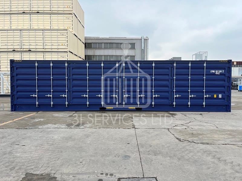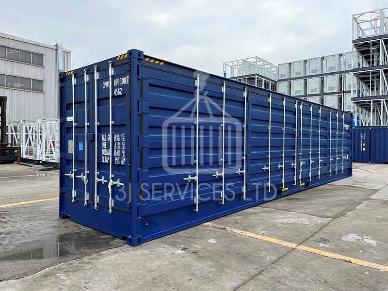 Not only are high cube side loading containers easy access with their concertina doors to one long side as well as the normal cargo doors on the end, but you have the extra 1ft in height too. This is a very bespoke piece of equipment and we also have them in green, which are in high demand.
