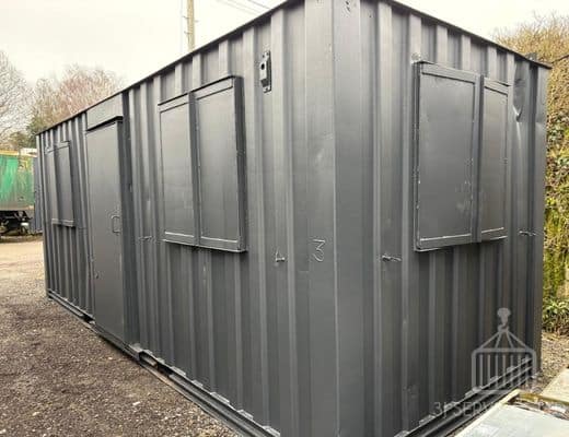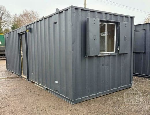 We were able to offer our client a 24ft x 9ft unit. It was of steel construction with a personnel door, windows with anti-vandal shutters, vinyl flooring, lining and insulation, a sink unit with cupboards, lighting, heating and power points. It ticked all of the boxes and the client was pleased to take delivery within a week of placing their order.