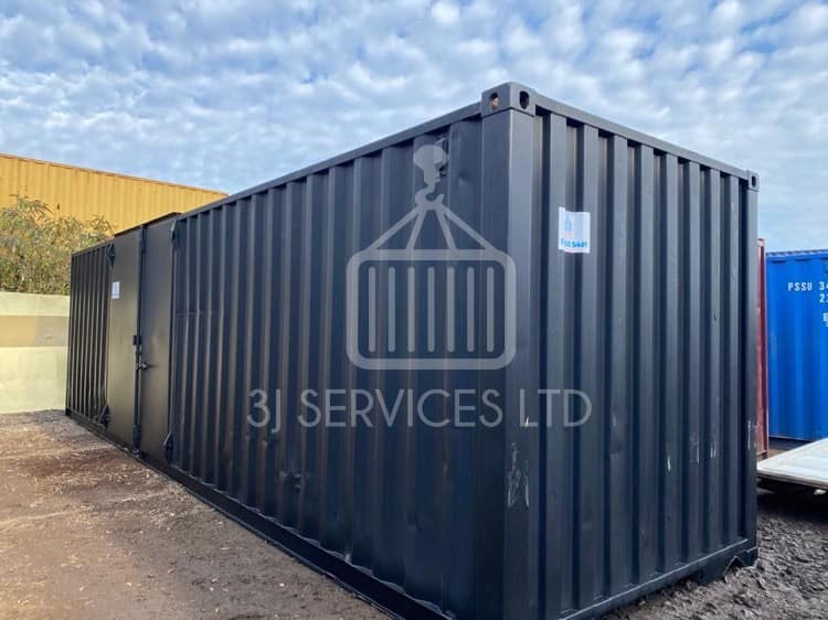 A steel security lockbox was fitted to the double doors and the container was fully repainted to black with marine standard container paint.
