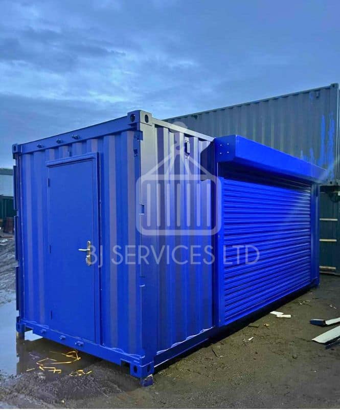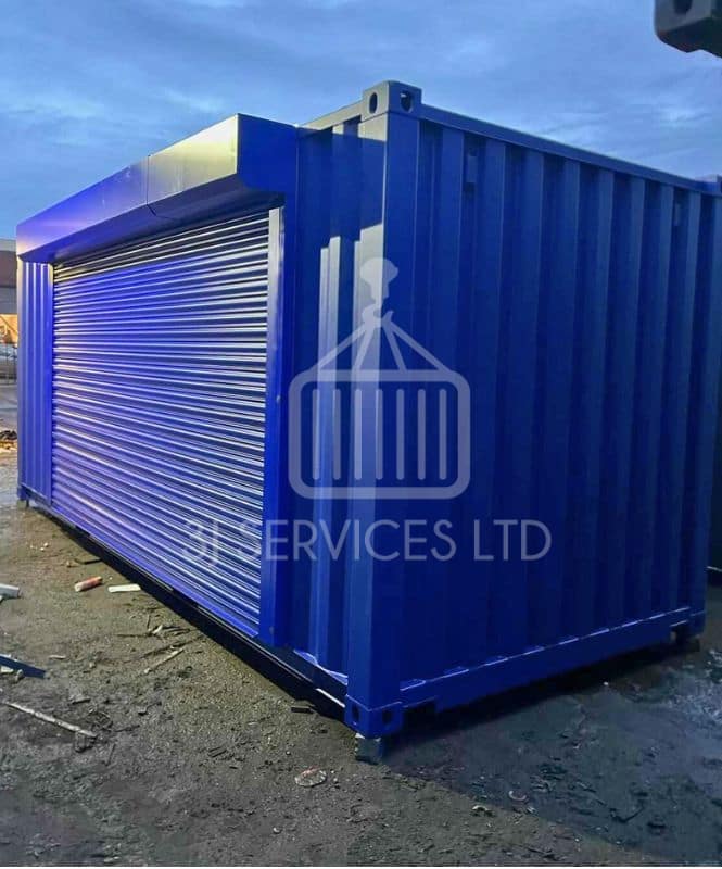 Our client required a 20ft container with a roller shutter and door in the one end. They had been commissioned on an exciting but confidential project to provide a servery for a nationwide brand out of a 20ft container. Our clients skills were varied but they were looking for a firm who could supply the container and do certain aspects of the work prior to delivery. 3J Services first started dealing with this client 9 months before the order was placed offering different quotations and options until they won the order.