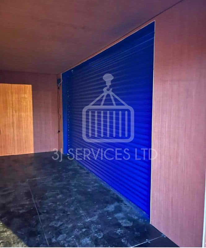 We were pleased to take the container modification to where the client needed us to before it was onward delivered for extra works. 3J Services installed a roller shutter into the 20ft container along with a personnel door. We also lined the container in ply with rockwool insulation to help to prevent temperature swings and we re-painted the container to the end users brand colours.