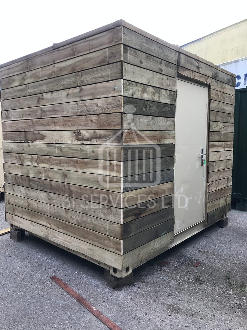 The specifications of this unit varies, as they are off-hire units they could have been built to a wide range of specifications, however, they tend to have vinyl flooring, insulated and lined walls, lighting, heating and power-points, at least one sliding window with an anti-vandal steel shutter and an anti-vandal personnel door.