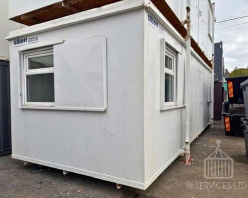 The majority of the used 32ft steel portable office cabin units are brought in as ex-hire equipment from different fleets so the specifications can vary. Usually, 32ft x 10ft portable office cabins have seen previous days on construction sites or similar and therefore are a corrugated or flat panel steel anti-vandal design for security. This style of unit will normally have one or two sliding container windows with anti-vandal shutters and one steel security personnel door. The windows and doors are designed to keep the unit secure by featuring multiple point locking systems, shoot bolts and anti-jemmy studs.