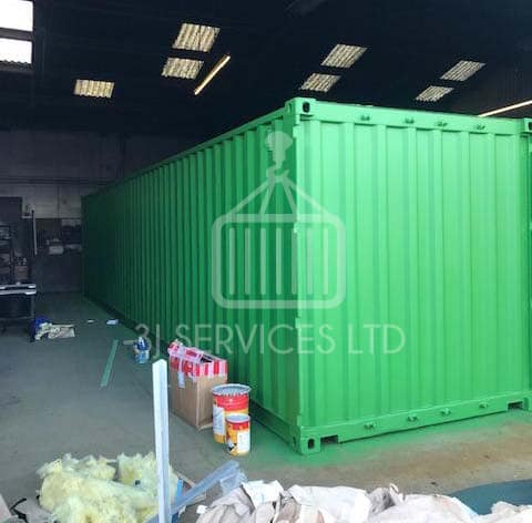Shipping containers are painted with high quality, marine grade acrylic paint using a spray gun to give an even spread over the surface. We can paint containers in most of our nationwide container depots or we can carry out paintwork on site. Applying a fresh layer of shipping container paint will provide a barrier between the steel and the ever-changing Great British weather which will prolong the life of the container and improve its appearance.