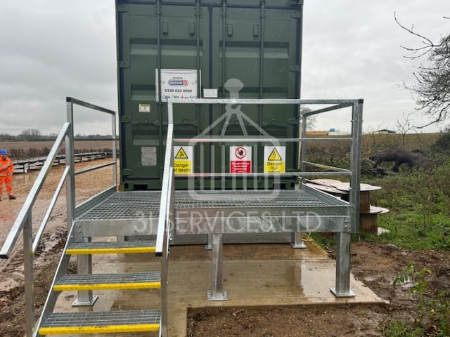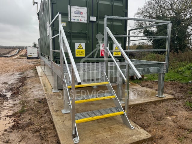 Are you planning on stacking containers, do you have an idea for an exhibition stand, restaurant or shop? Then a staircase is the perfect solution for getting to the top levels safely. They come in different styles and sizes, and can be fabricated to your bespoke design. We can also provide mobile container staircases so that your staircase can easily be moved to access any one container in a stacked row. A popular alternative to a mobile staircase is a staircase with a large landing or walkway. This makes accessing stacked containers really simple and safe.